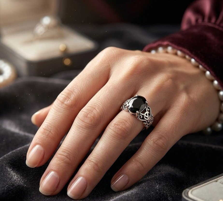 Artisan Silver Crowned Oval Pendant – Bold Black Onyx Statement Jewelry
