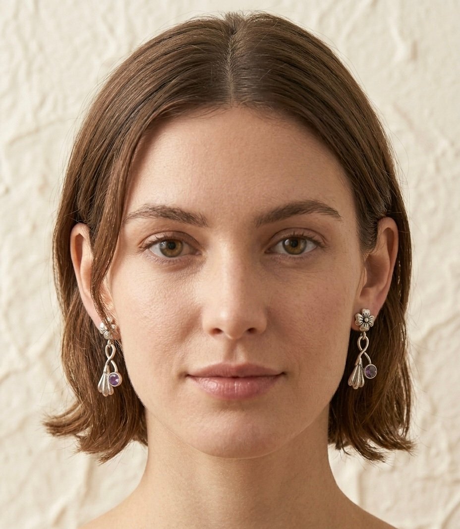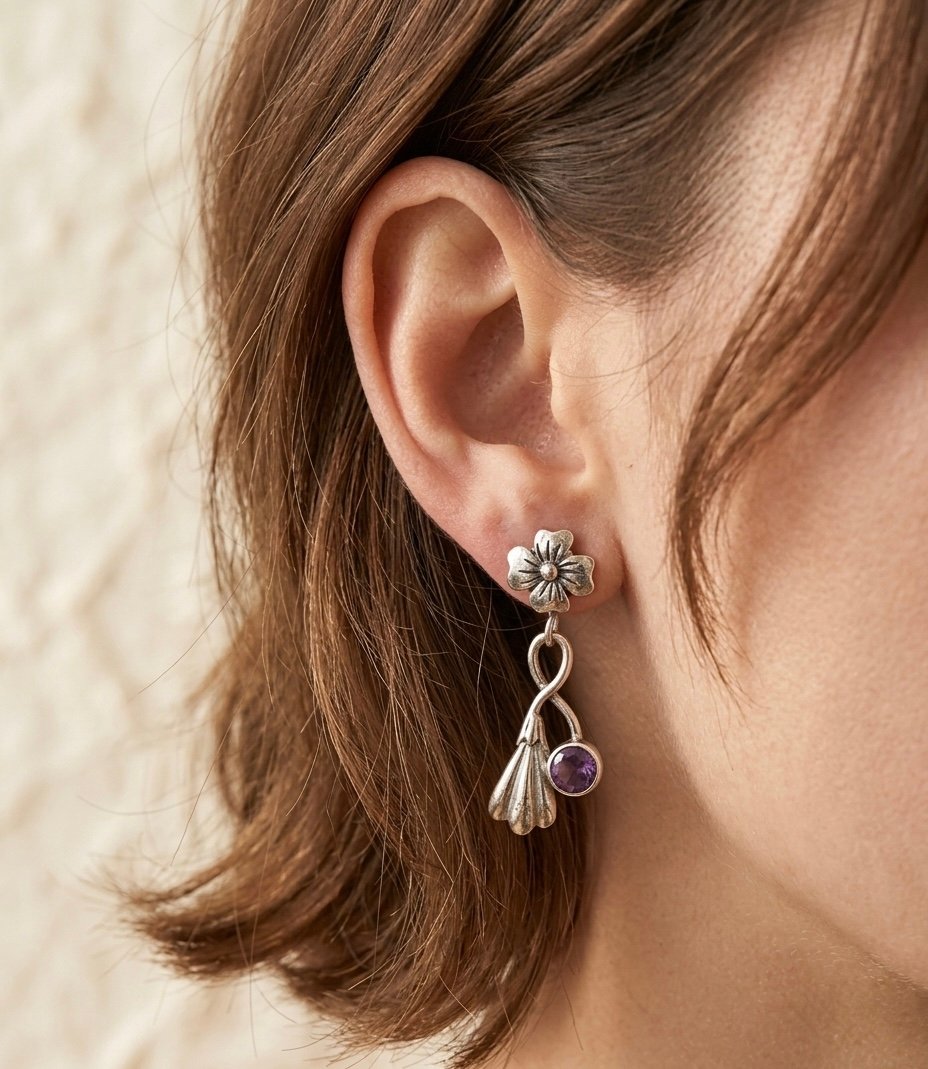 Flower & Infinity Swirl Earrings with Round Gemstones