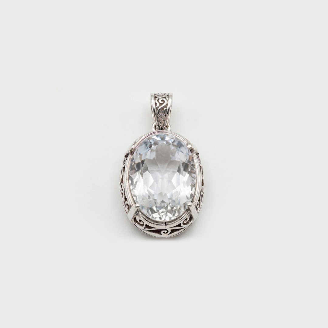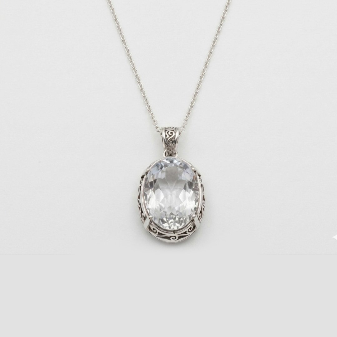 Handcrafted Silver Filigree Necklace with White Topaz Gemstone