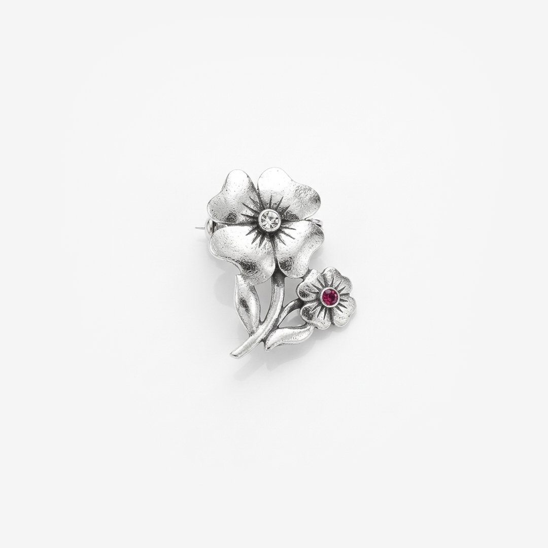 Handcrafted Silver Flower Brooch with Semi-Precious Stone