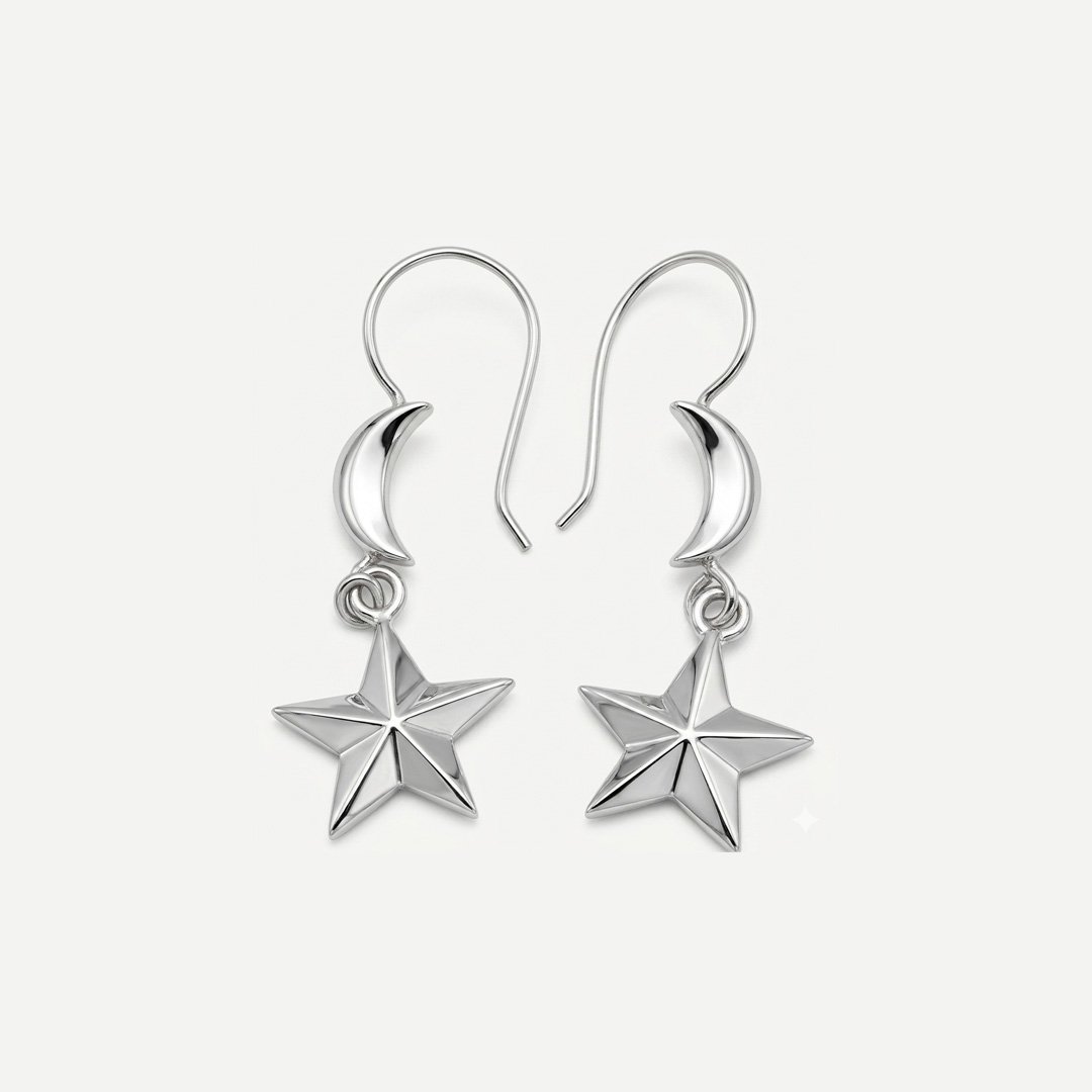 Minimalist Silver Star and Moon Dangle Earrings quantity