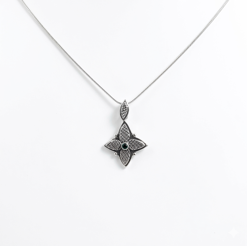 Minimalist Silver Star Necklace with Deep Red Garnet Accent