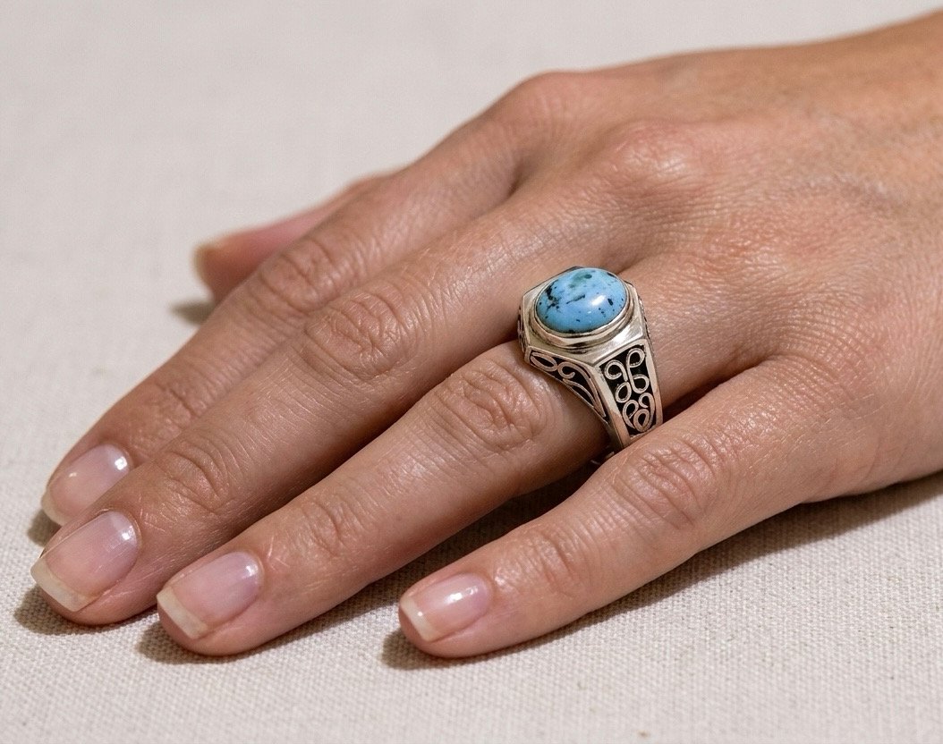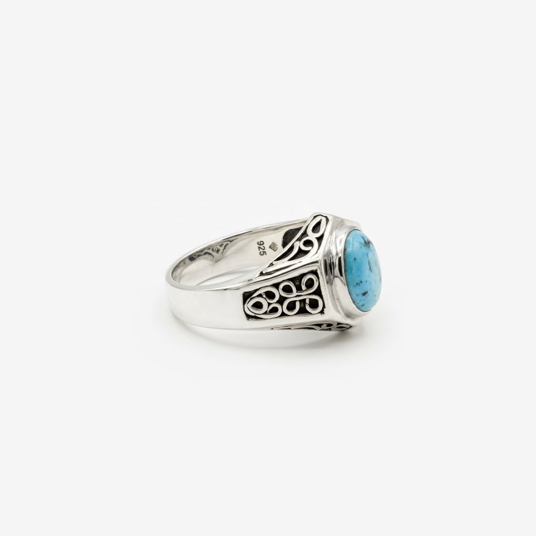 Sterling Silver Filigree Band Featuring Oval Blue Turquoise Gemstone